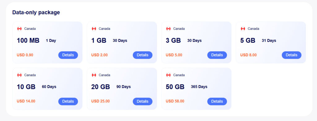 While traveling to Canada, you will find cheap plans starting from less than $1, but you should always consider checking the price per GB. For example, the Nomad eSIM 5GB plan offers better value than the Airalo eSIM 1GB plan, giving you more value at a small difference in cost. That is the real secret to getting a cheap eSIM in Canada.